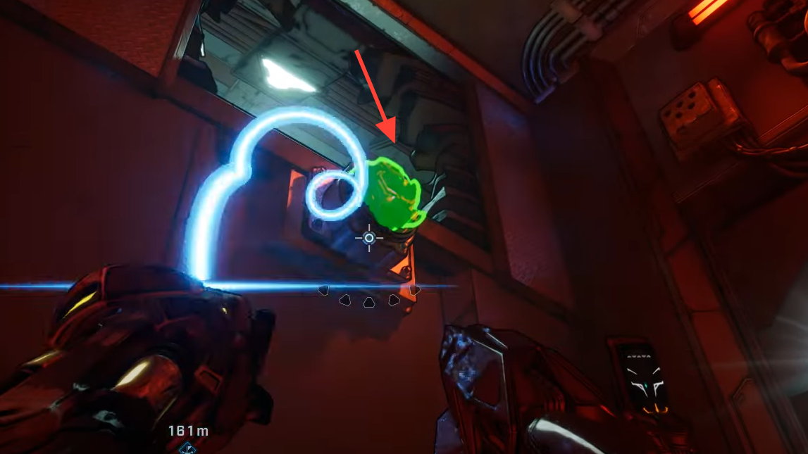 - Follow the winding corridor into a small nerve center, then take the red‑lit corridor on the left.