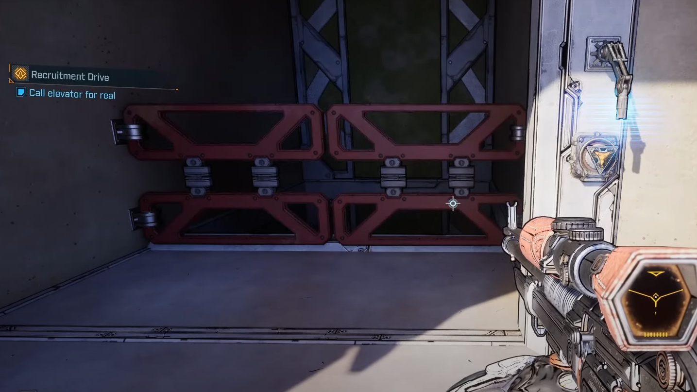 Step 4: If you fell down the shaft, retrace the climb/glide route you used to reach the tower and get back to the top; the door inside won’t open until Claptrap rides up on the elevator.