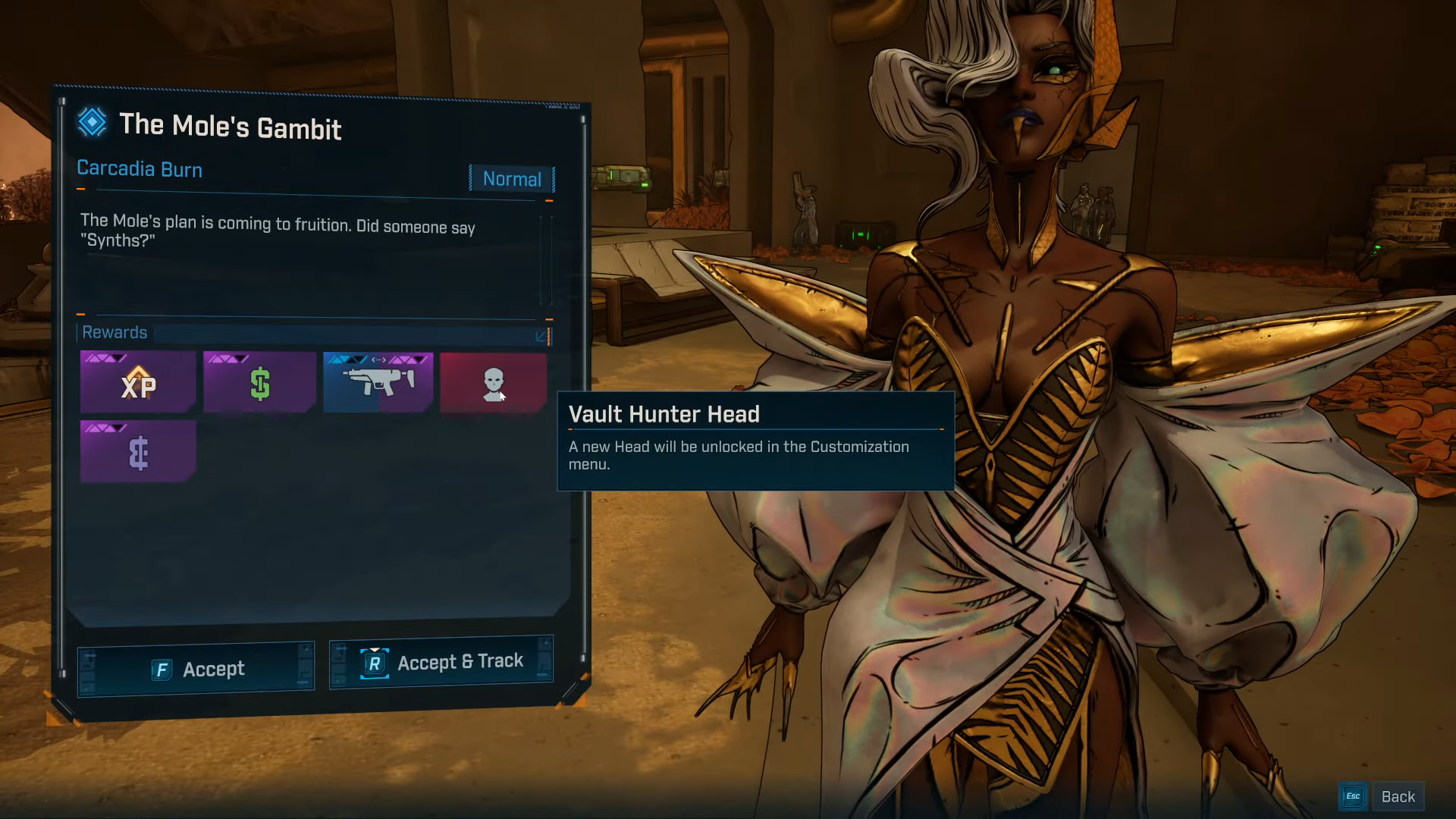 The Cursed to Live head is a mission-tied cosmetic that adds a grim, undead look to your Vault Hunter. It’s not a random drop: you earn it by completing a specific side mission in Levaine’s Electi questline after a short chain of prerequisites. Guides consistently place the reward at the end of The Mole’s Gambit, offered in Carcadia once you’ve progressed far enough in that faction story.