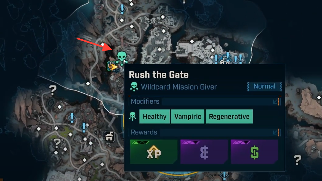 - On the map, a large green skull appears to mark the mission. This is separate from any rotating Weekly Wildcard you may see elsewhere.
