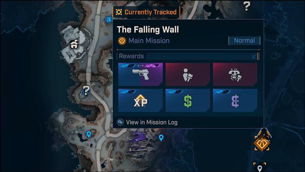 Step 1: Travel to the Lopside sub‑region in Carcadia Burn and set The Falling Wall as your active mission. This objective does not place a usable waypoint, so you must approach the breach manually.