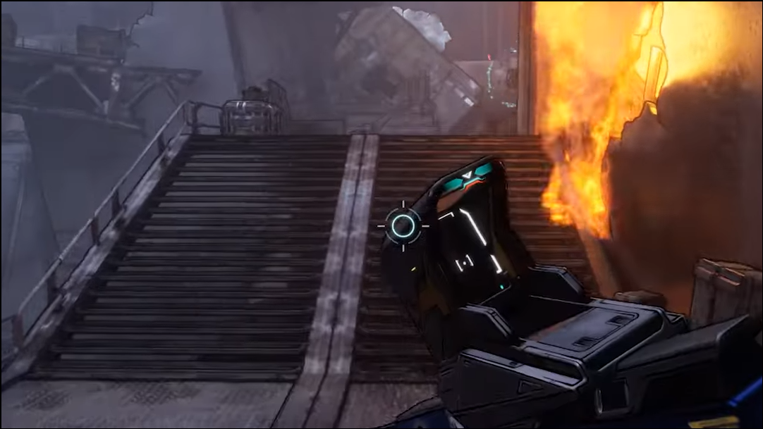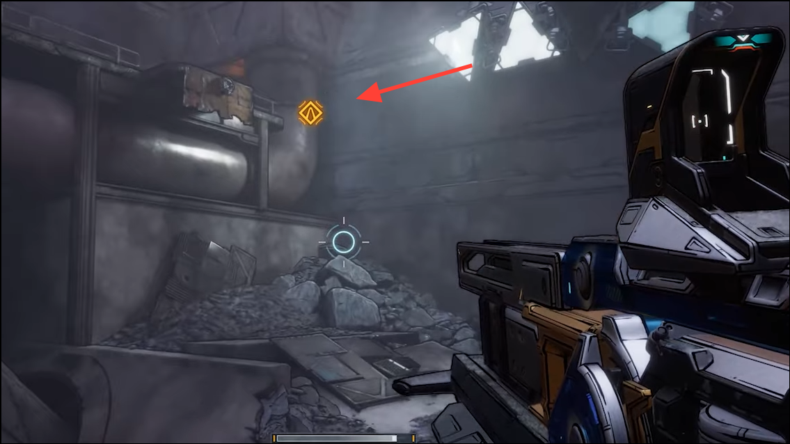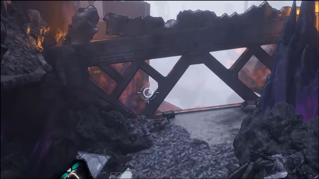 Step 5: Climb the metal debris on the right in the next space to reach the updraft/jump surface nearby. This puts you on the correct vertical path toward the breach.