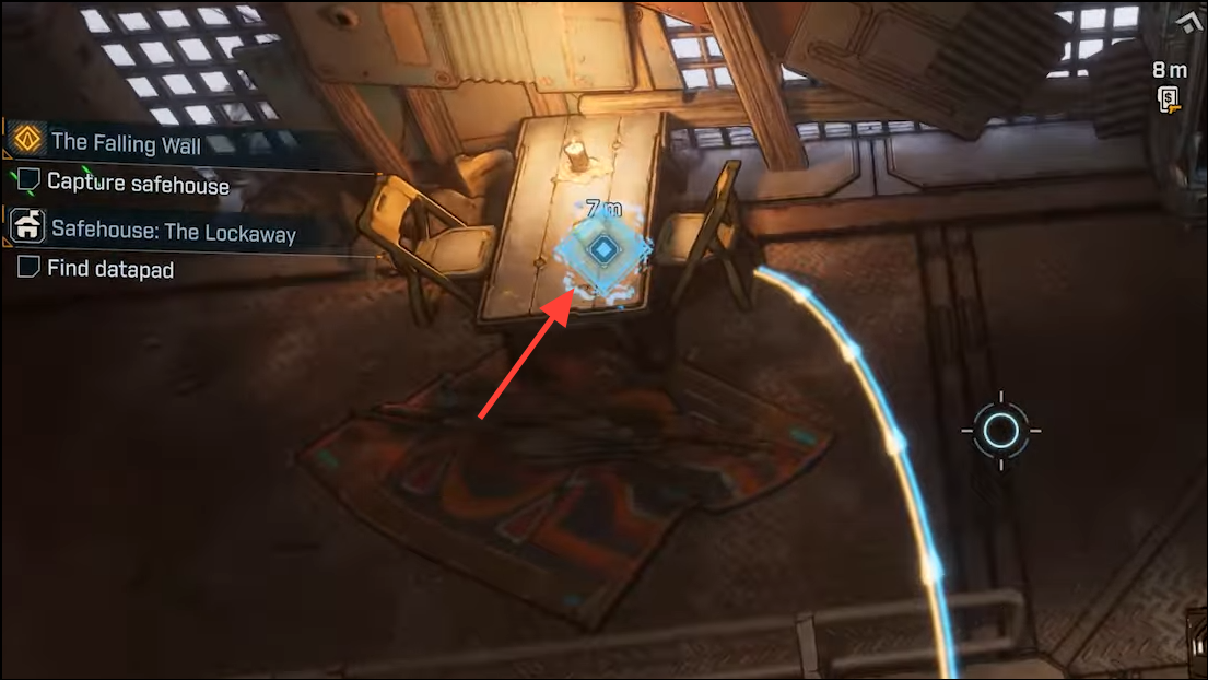 Step 3: Pick up the datapad lying on the table at the top level. Collecting this item is required to claim the safehouse.