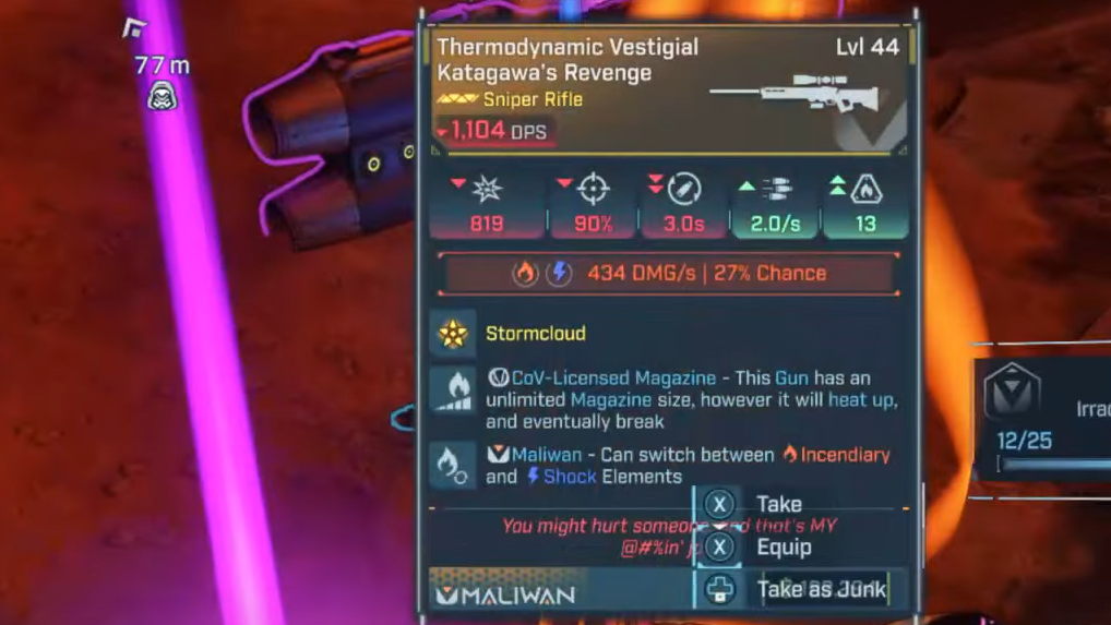 | Weapon | Katagawa’s Revenge (Legendary Maliwan sniper) |
