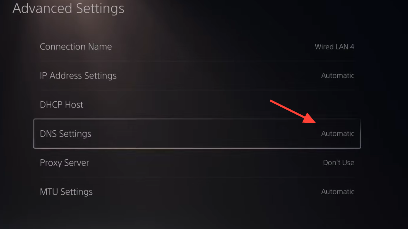 - Change “DNS Settings” from Automatic to Manual.