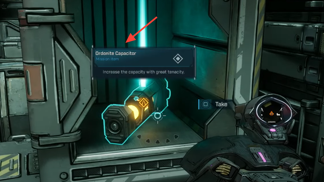 Enter the holding bay and loot the Ordonite Capacitor from the open crate area by the rail cars. There’s no puzzle here — grab it and backtrack out of the depot.