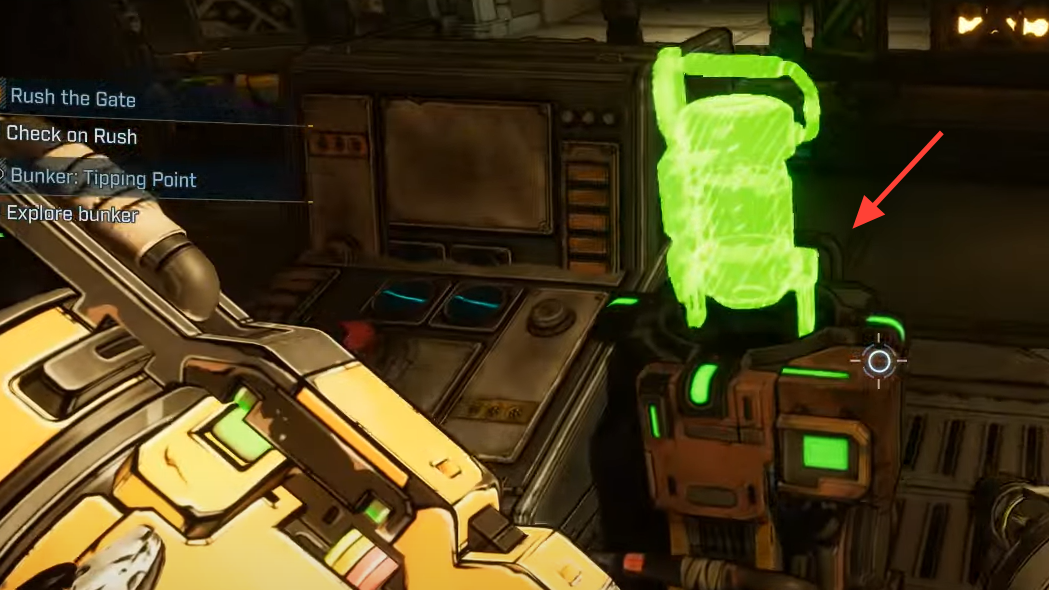 - 3) Grab the explosive. Climb up, pick up the explosive device, and throw it at the bunker’s main entrance to blast it open.