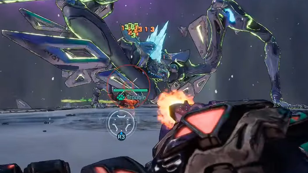 Critical damage: aim at the crystal spikes on top/back of its head. They’re always hittable with line of sight and are the most reliable crits while you’re airborne. Origo often begins with Cryo beam across the arena—open with Shock shots into the spikes as you strafe or glide.
