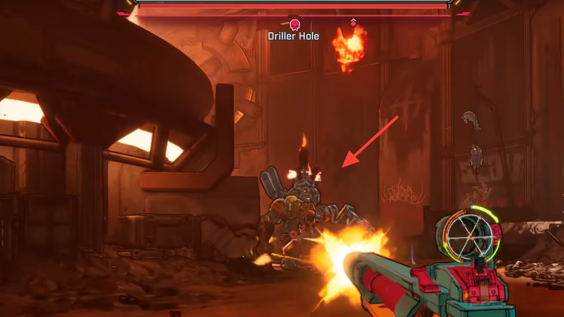 Driller Hole runs the refinery for Callis and finally steps out from behind the comms. Mobility matters here, especially when the boss seeds the floor with hazards.