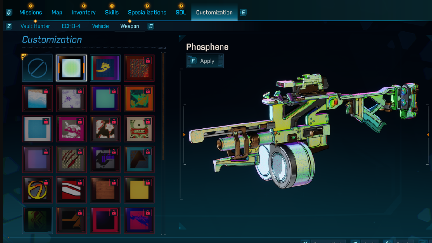 Phosphenes are ultra-rare, “shiny” versions of Borderlands 4’s legendary guns. They don’t change damage, parts, or perks. Instead, they unlock a cosmetic skin with a distinctive rainbow sheen for that specific legendary model. Once you’ve picked up a Phosphene copy of a gun, you can apply its Phosphene skin to any other drop of the same weapon.