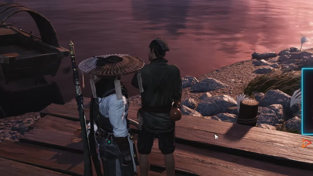 Step 1: After the encounter starts, approach the man on the riverbank. He is grieving over his dead goose, which is lying nearby in the water.