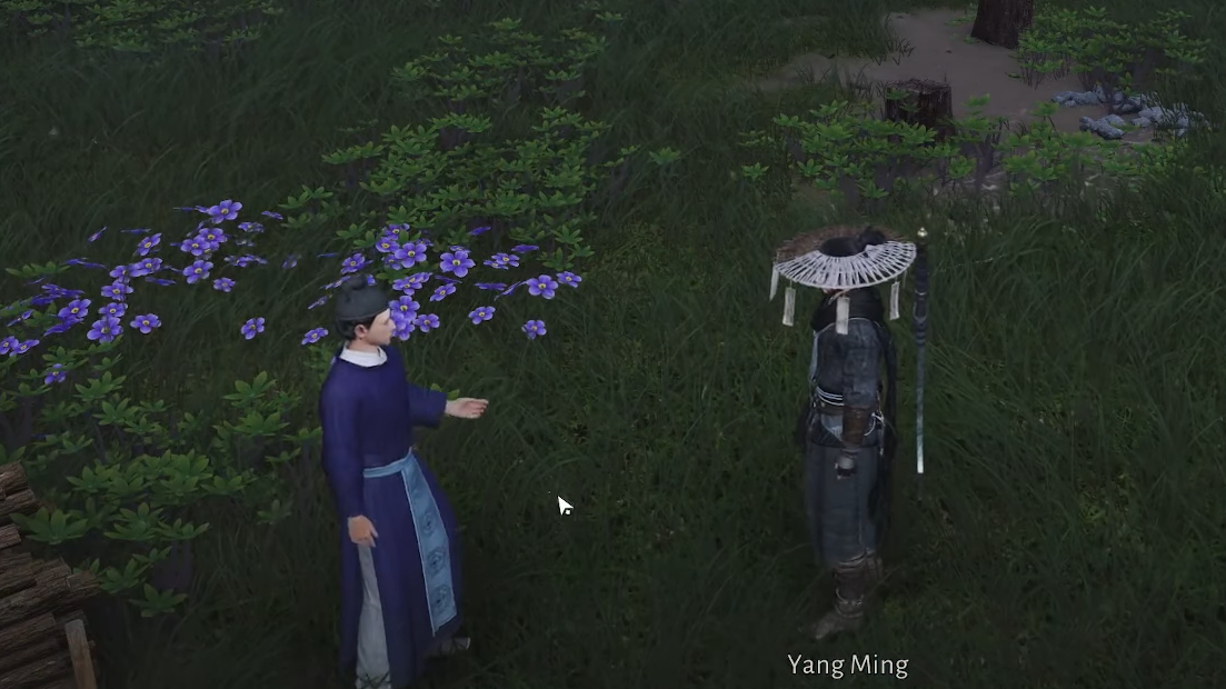 Step 11: Once control returns, search the area around his home. Walk behind the house and check near the trees on the slope; Elder Yang is lying on the ground beneath one of them. Talk to him to complete the encounter. He admits that his experiment failed yet again, but vows to keep chasing his ideas until he finally succeeds.