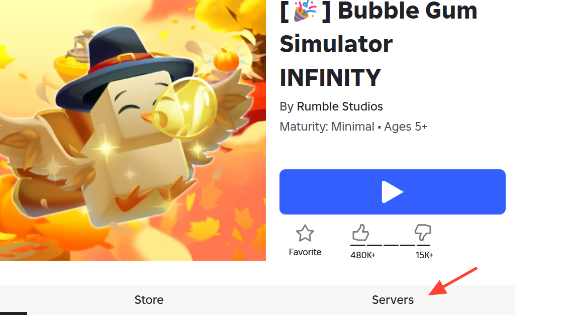 Step 1: Open the official Bubble Gum Simulator INFINITY experience page at roblox.com/games/85896571713843/Bubble-Gum-Simulator-INFINITY in a browser where you are logged into your Roblox account.