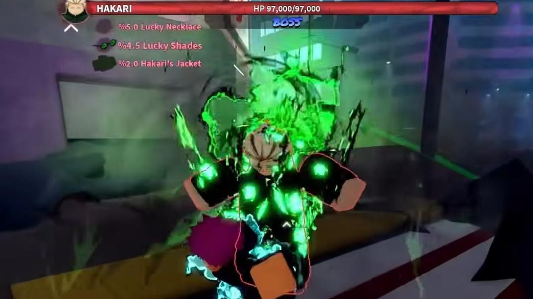 The Hakari World Boss spawns in East Shibuya and drops all three themed accessories. He has around 80,000 HP, can evade attacks, and will activate his own domain expansion during the fight. If he triggers immortality, you simply have to wait for it to expire before continuing to deal damage.