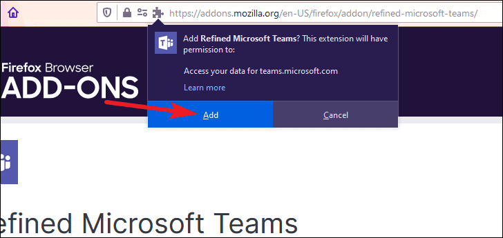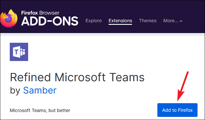 Open Firefox and go to Firefox Browser Add-ons. Then, you can search for ‘Refined Microsoft Teams’. You can also click the link below in Firefox to get the extension.