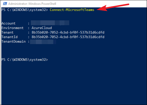 Now, you need to login into your Microsoft Teams account from PowerShell so it can run the commands we need. Run the following command in PowerShell.