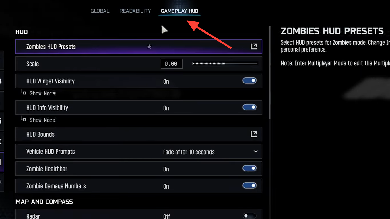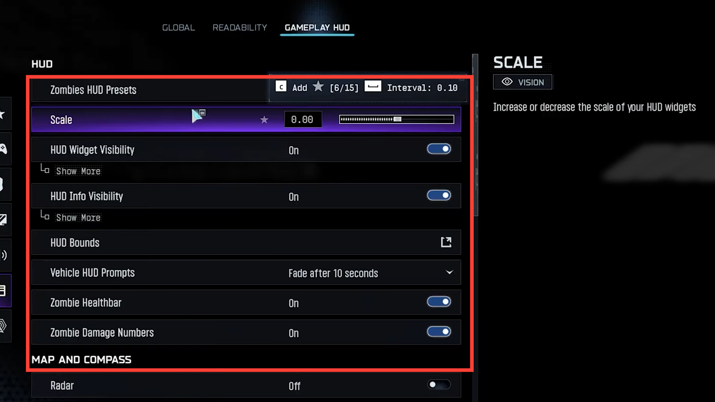 Then refine the HUD content from the Interface settings while you’re in the Zombies menus: