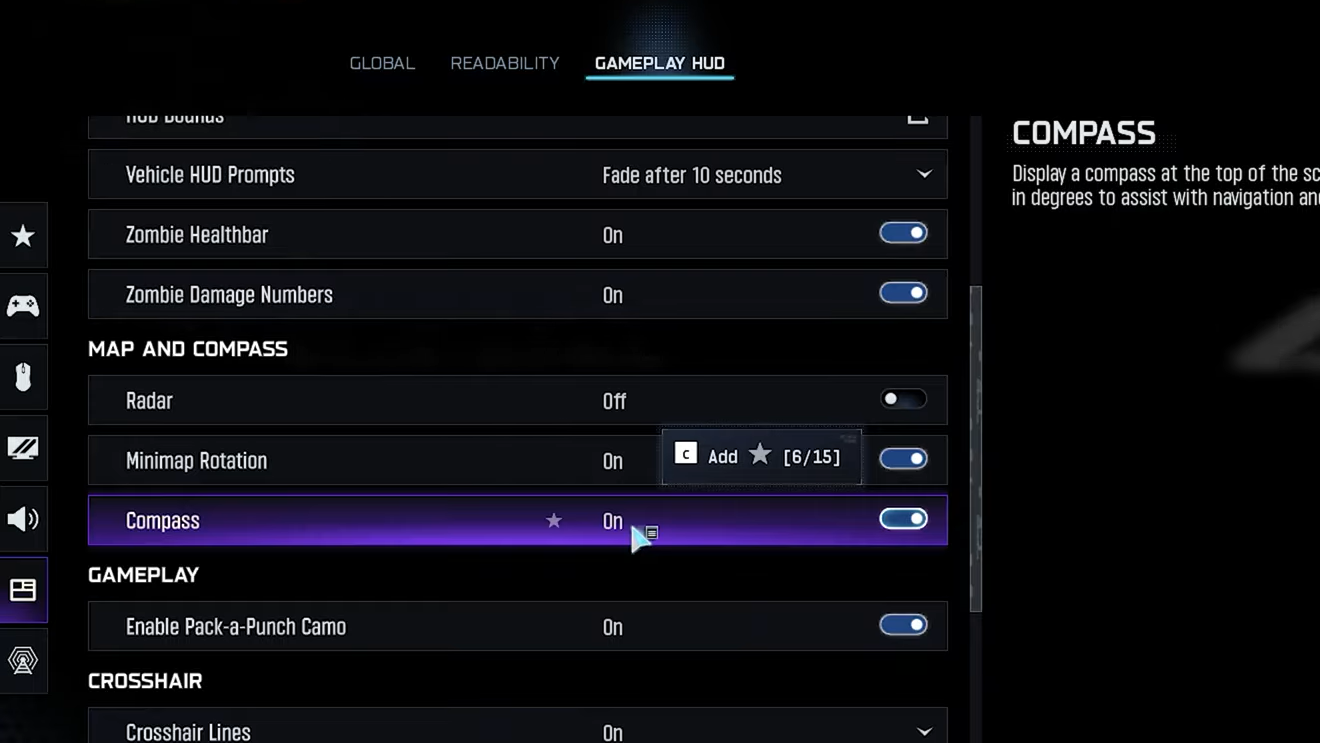 | HUD Widget Visibility | On/off switches for minimap, compass, loadout info, GobbleGums, and more. |