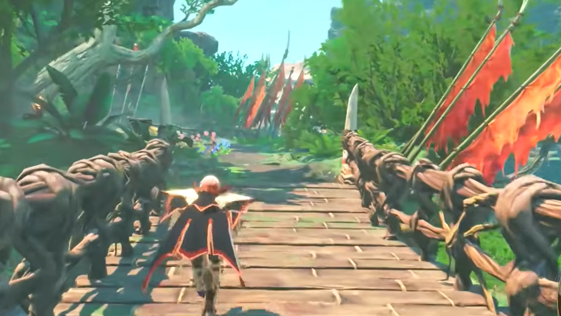 Step 3: Save at the Catavan Stand ahead, then approach the cliff. A cutscene reveals the Invasive Arzuros below, along with glowing track sets. Collect as many tracks as possible before it spots you — use a breath attack from the back corner near the tree to distract it if needed.