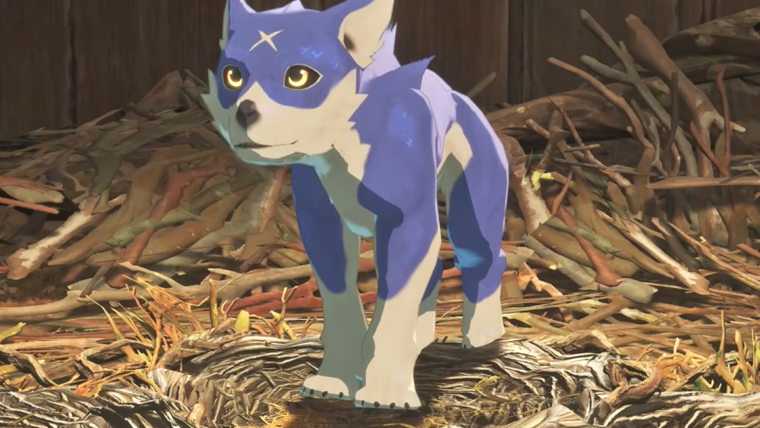 The in-game description reads: "A blue-furred Fanged Beast that is both clever and highly athletic. Relatively gentle for a Fanged Beast, it plays an integral role in Sheparden life as a hunting partner and means of transportation."