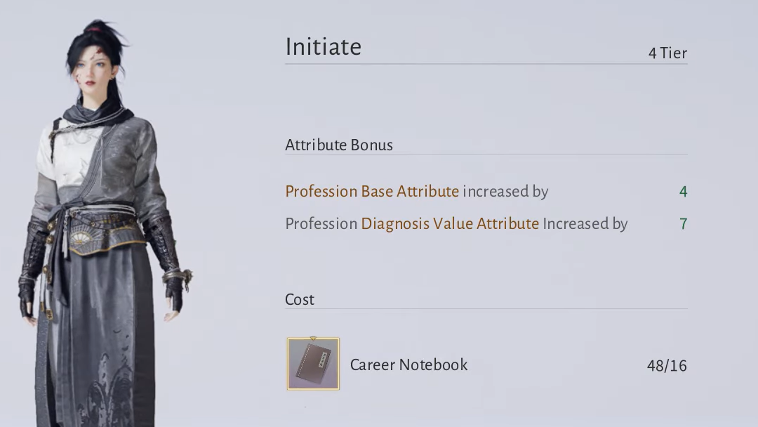 Advancing your profession level requires increasing amounts of Career Notebooks. Early tiers demand smaller quantities, but higher tiers require 200 to 250 notebooks per level. If you split your purchased notebooks between Healer and Scholar, you will progress more slowly in each profession compared to focusing on a single path.