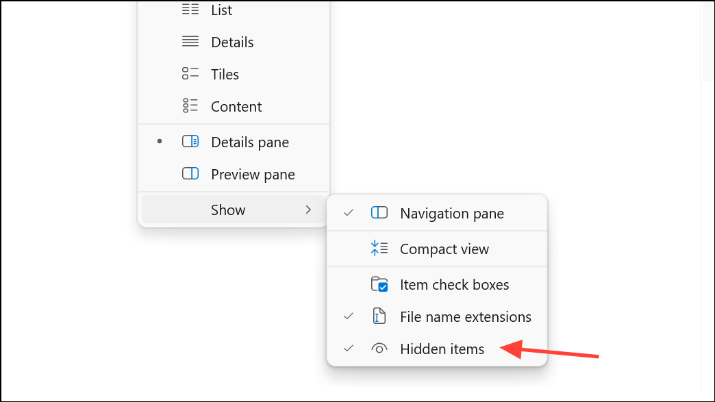 Step 1: Ensure hidden files and protected operating system files are visible in File Explorer. Click the three-dot menu, select Options, go to the View tab, and adjust the settings to show hidden and system files.