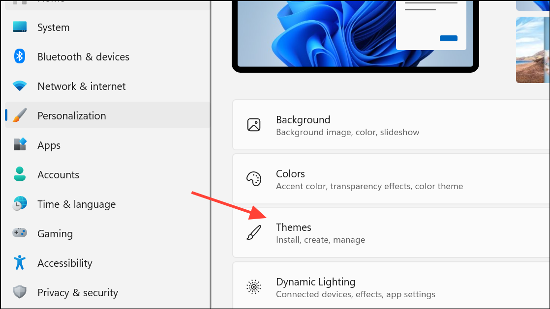 Step 3: Within Personalization, click on Themes. This area controls theme-related features, including desktop icons.
