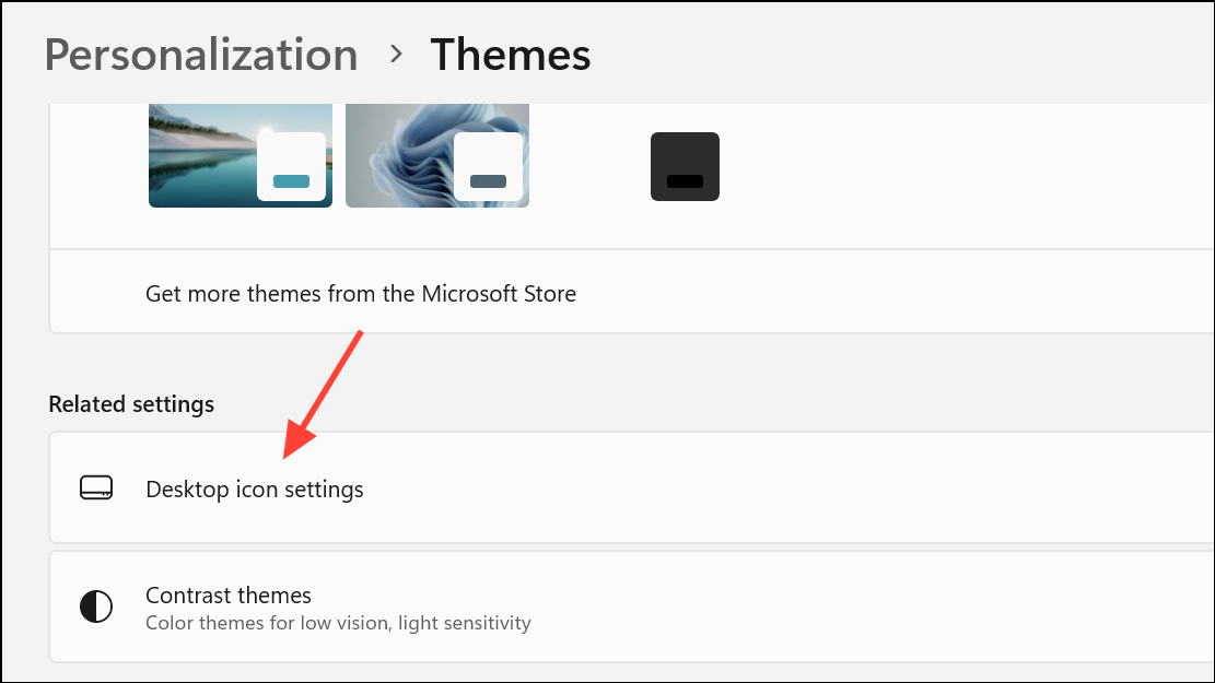 Step 4: Scroll down and select Desktop icon settings under the “Related settings” section. This opens a dialog box listing all system icons available for the desktop.