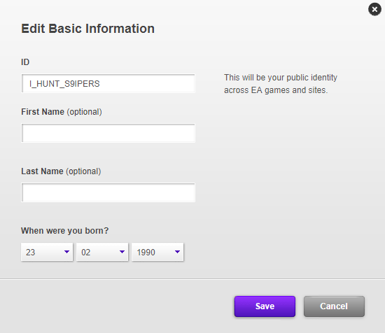 - Under the ID field, input the new username you want in Apex Legends and hit the Save button.