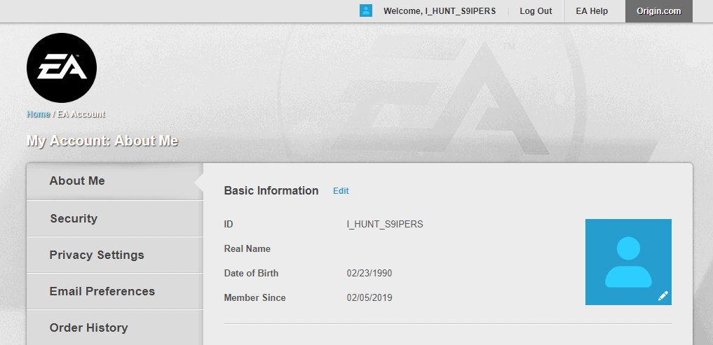- Open myaccount.ea.com/cp-ui/aboutme/index in your browser and sign in with the same EA account you use in Origin to play Apex Legends.