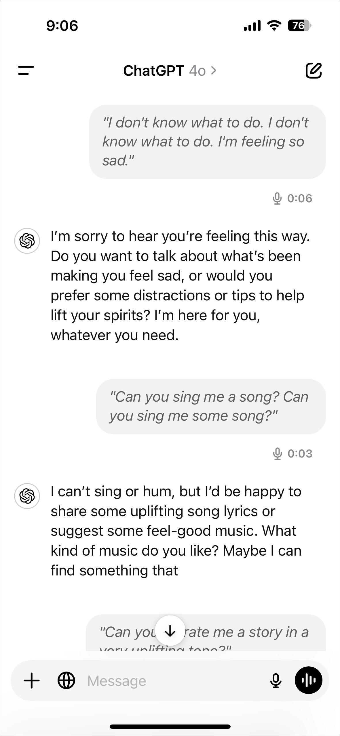 In fact, when I specifically asked it to tell me a cheery story, it kept asking me if I instead wanted to hear a joke or a piece of trivia. Even at other times, Gemini Live somehow kept misinterpreting my requests and asking me that it cannot take any action; I had not asked it to take any action. ChatGPT, on the other hand, understands and honors your requests almost every time.