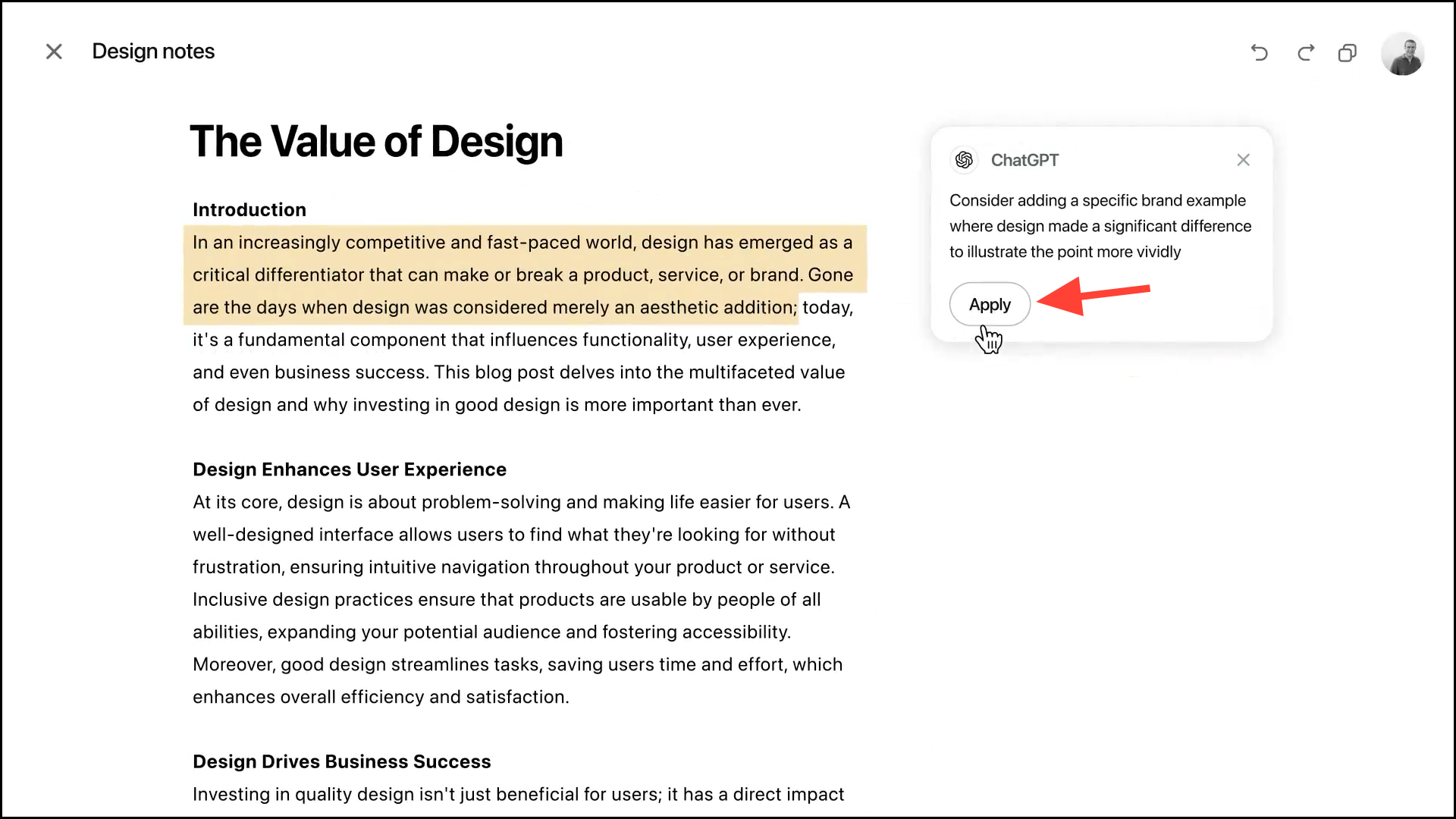 Another perk with ChatGPT's Canvas is that it can also suggest inline edits to the users to improve the content when the user selects something.