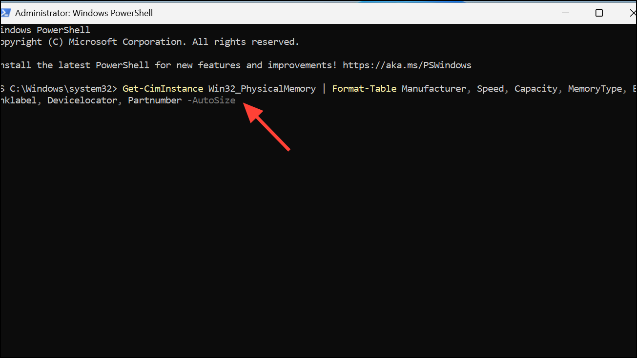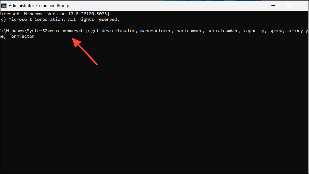 This command displays each RAM module’s location, manufacturer, and speed. To see even more attributes—such as capacity, form factor, and part number—expand the command as follows: