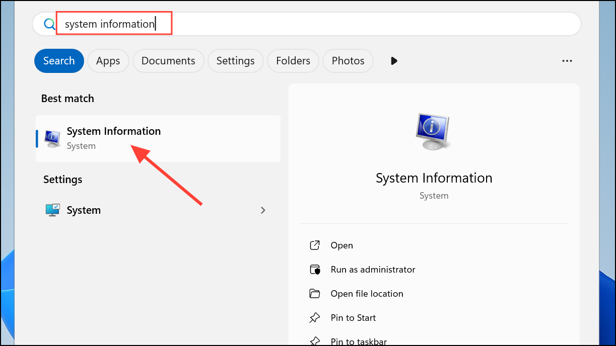 Step 1: Open the Start menu, type System Information, and select the app from the results.