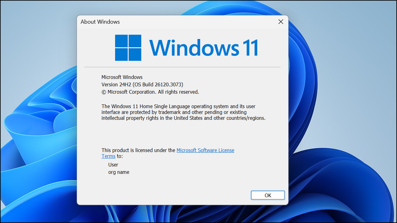 Step 3: Review the pop-up window. You’ll see your Windows 11 edition (such as Home, Pro, or Enterprise), the version (for example, 23H2), and the OS build number (such as 22631.2715). This method quickly reveals if you’re on a major feature update or a cumulative update build, which is useful for support and compatibility checks.
