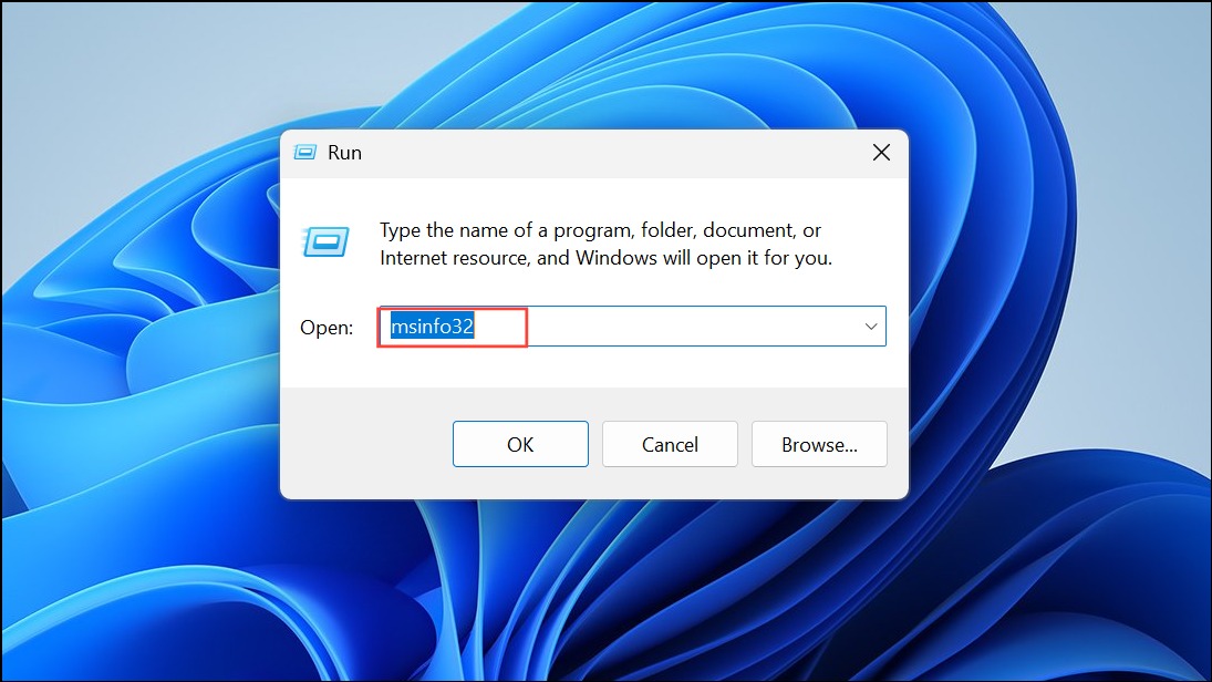 Step 1: Press Windows + R, type msinfo32, and press Enter. This opens the System Information utility.