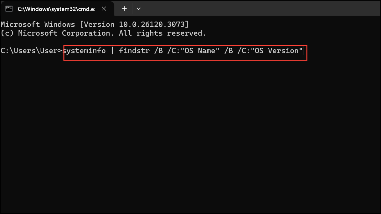 systeminfo | findstr /B /C:"OS Name" /B /C:"OS Version"