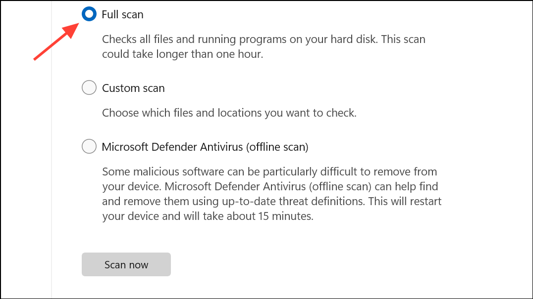 Step 2: Select a full system scan rather than a quick scan. A full scan examines all files, including hidden and system folders where monitoring software may reside.