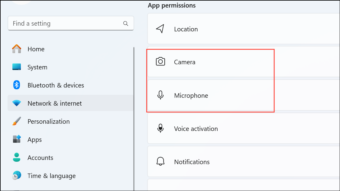 Step 1: On Windows, go to Settings > Privacy & Security > App Permissions and select Camera or Microphone. On Mac, navigate to System Settings > Privacy & Security > Camera/Microphone.