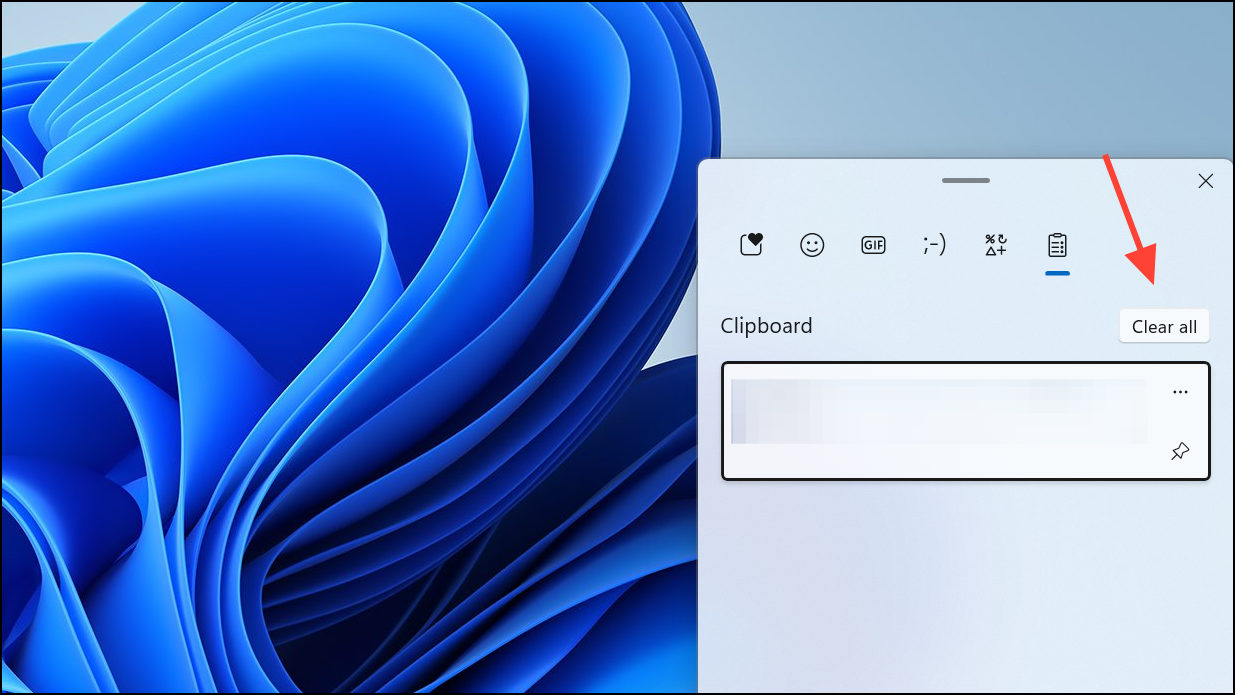 Step 2: Click the Clear all button at the top of the clipboard panel. This action immediately removes all clipboard entries except those you've pinned, ensuring that sensitive or outdated data is no longer accessible.