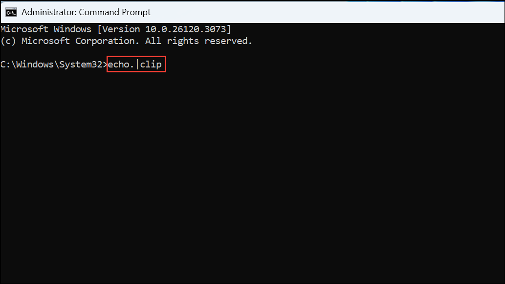 This command clears the current clipboard content by sending an empty string to the clipboard, effectively erasing the last item you copied. It does not remove the full clipboard history if you have clipboard history enabled, but it does clear the active clipboard data for immediate pasting.