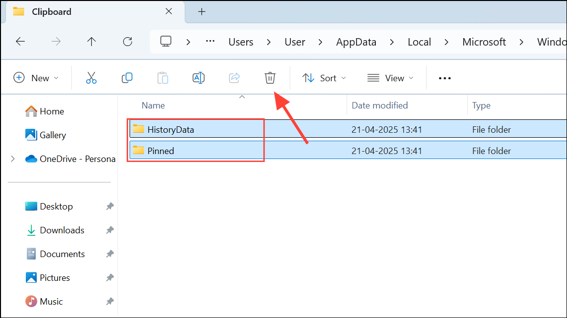 Step 2: Delete both folders found in the Clipboard directory. These folders store clipboard cache and settings data for your profile.