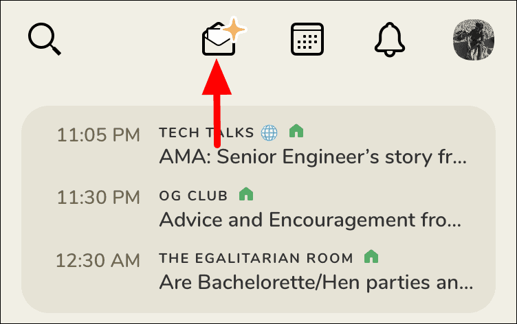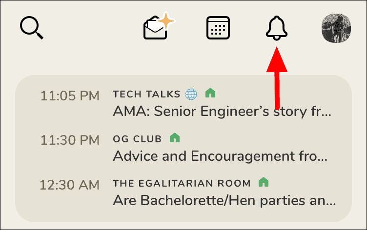 When Clubhouse adds invites to your account, you will receive a notification for the same at the top of the screen. Also, you could check the notification in the designated section by tapping on the ‘Bell’ icon at the top-right corner. This opens the notification section where you can see all the in-app notifications.