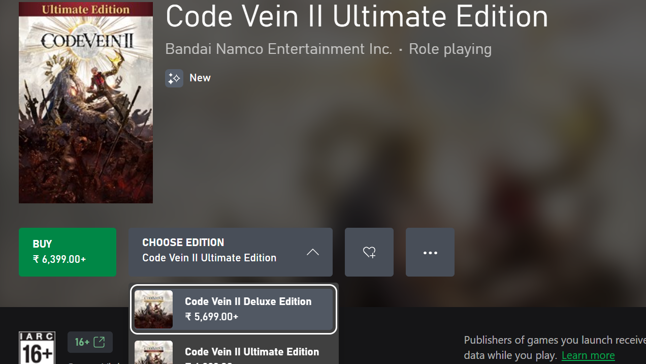 If you bought the Standard Edition and want the additional content, upgrade packs are available. The Deluxe Upgrade Pack costs $24.99 and adds the Custom Outfit Pack plus the Mask of Idris expansion entitlement. The Ultimate Upgrade Pack costs an additional $14.99 on top of that for the Code Vein Character Costume Set and digital extras.