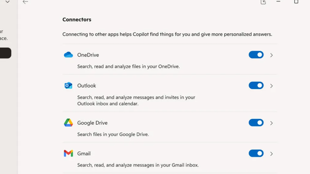 Copilot’s new Connectors feature brings your Gmail, Google Drive, Google Calendar, Google Contacts, OneDrive, and Outlook data into a single place, so you can ask for what you need and get it without switching apps. This setup is opt-in and takes just a few minutes per service.