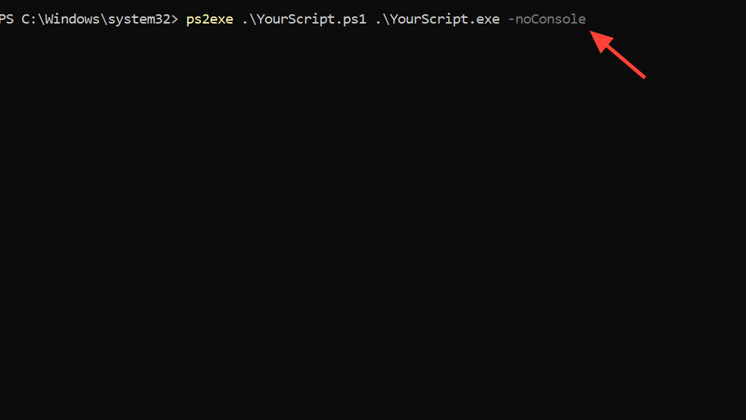 Step 2: Compile the script using the -noConsole parameter so that no PowerShell console window appears when the EXE runs.