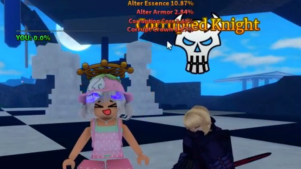 Step 3: Fight the Corrupted Knight in the arena. The boss hits hard and has 750 million HP, so prioritize dealing as much damage as possible. Boss rewards in Sailor Piece scale with the damage you personally deal, which directly affects your chances of receiving rare drops like the Corrupt Crown.