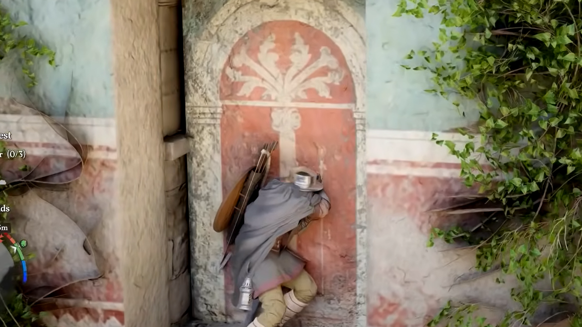 If you want to solve the puzzle the intended way, you need to travel to the marked locations, find each mural, memorize its orientation, and then return to the chamber to match the discs. The three murals are all along a cliffside east of Anvil Hill, roughly 350 meters northwest of the House of Healing.