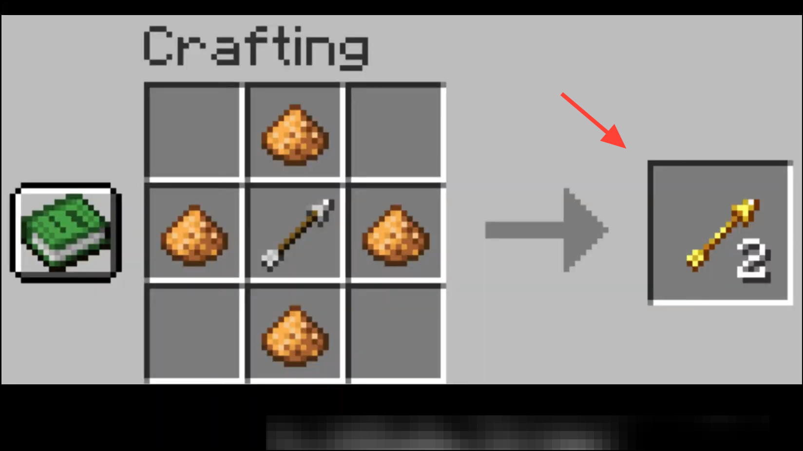 Step 2: Open the crafting table and place 1 arrow in the center with 4 glowstone dust in a plus shape around it. Take the 2 spectral arrows from the output.