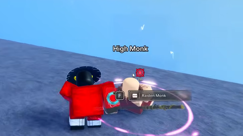After completing all three Raiko Pillar quests, head to the mountain cliff where the High Monk NPC sits. This NPC is labeled as Level 500+ and will only respond once the full questline is done. Speaking to the High Monk spawns the Raiden Monk, the boss you'll be farming repeatedly.